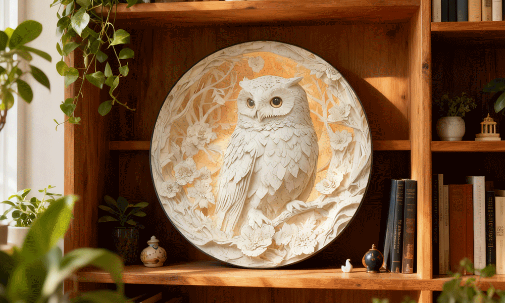 Each piece felt deliberate, solid — precision-cut with a soft matte texture that invited touch. The soft amber glow behind the owl and the delicate layering of its feathers seemed to draw me in, piece by piece, into a tranquil world of focus.