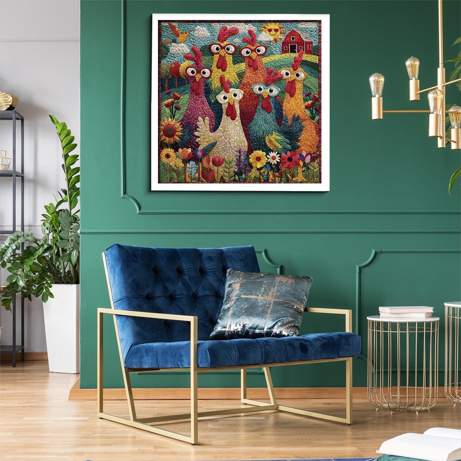 Whimsical Farmyard Fun Bring laughter to your puzzle time with these hilarious chickens wearing oversized glasses, set in a vibrant countryside scene.