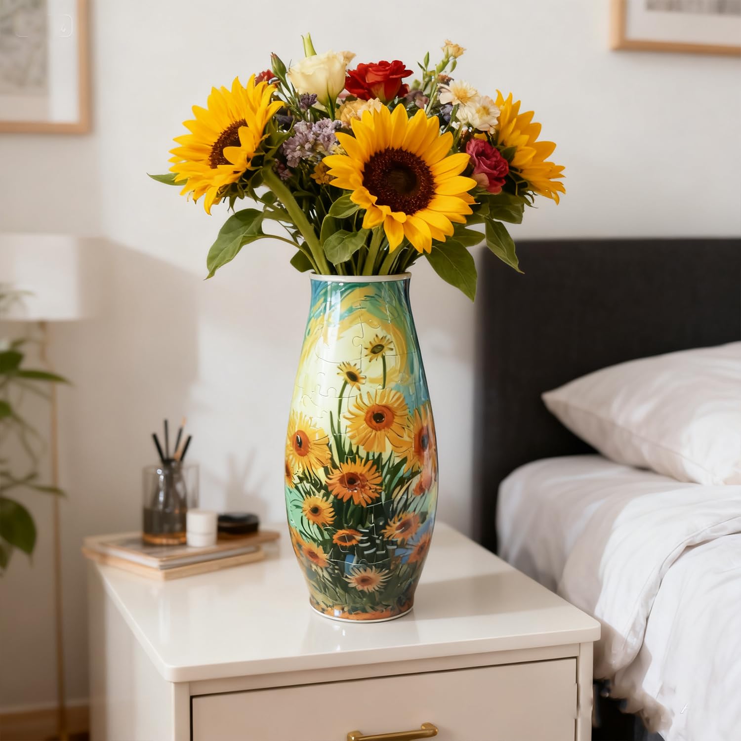 🌻 DUAL-SIDED ARTISTIC MASTERPIECE WITH VIBRANT COLORS: Admire a cheerful Sunflowers pattern on one side and a dreamy strarry sky on the other! This unique dual-sided design ensures your puzzle vases for flowers is a breathtaking piece of art from every angle. The vibrant colors and cute cut-out details create stunning light effects when the LED lights are on, making it a captivating centerpiece for living room, bedroom, dining room, office tables, shelves.